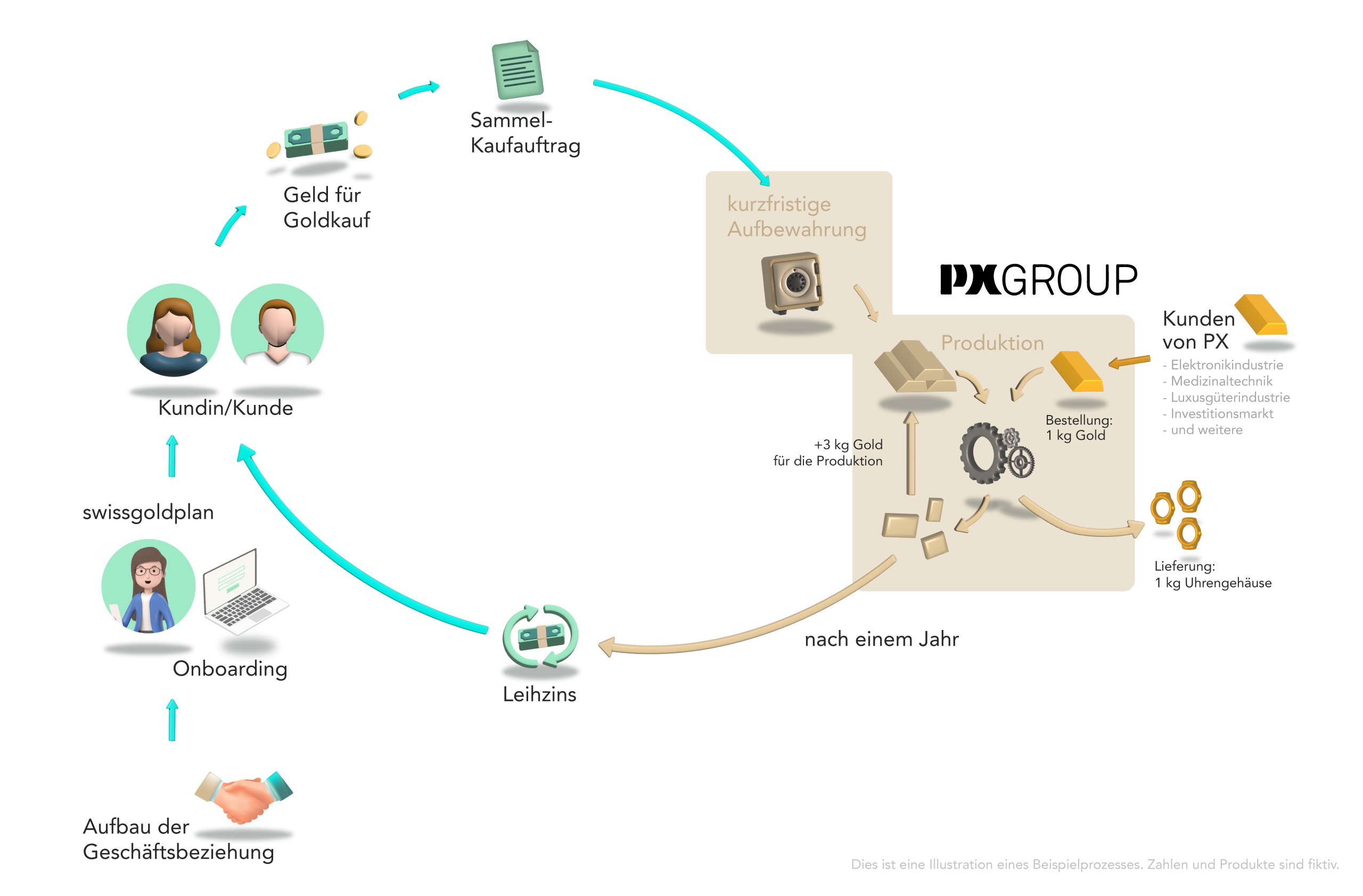 Ihr physisches Gold leihen Sie unserem Industriepartner PX PRECINOX SA aus. Das Gold wird in der Herstellung von Produkten für die Luxus-, Bijouterie- und Uhrenindustrie, die Medizinaltechnik und industrielle Applikationen im allgemeinen verwendet.